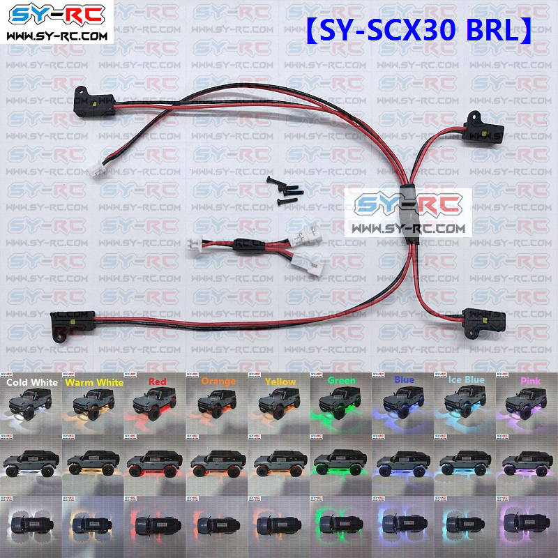 For Rock Light Kit:http://www.sy-rc.com/product/%e3%80%90sy-rc%e3%80%91%e3%80%90sy-scx30-jrl%e3%80%91rock-light-kit-fit-for-axial-scx30-130-jeep-wrangler-jlu/