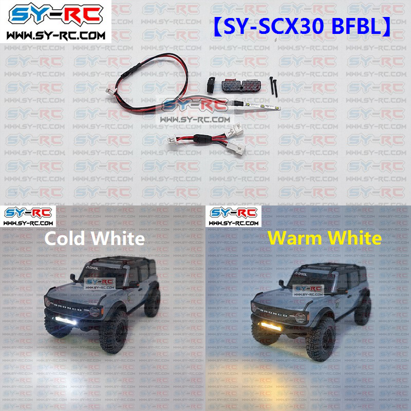 For Front Bumper Light Kit:http://www.sy-rc.com/product/%e3%80%90sy-rc%e3%80%91%e3%80%90sy-scx30-jfbl%e3%80%91front-bumper-light-kit-fit-for-axial-scx30-130-jeep-wrangler-jlu/