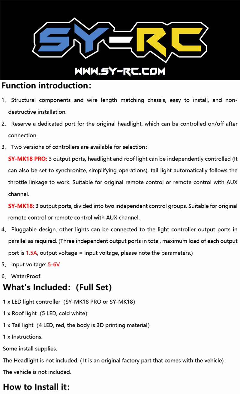 【SY-RC 】【SY-MK18 PRO】&【SY-MK18】LED Light Kit fit for HPI 1/18 Mini King